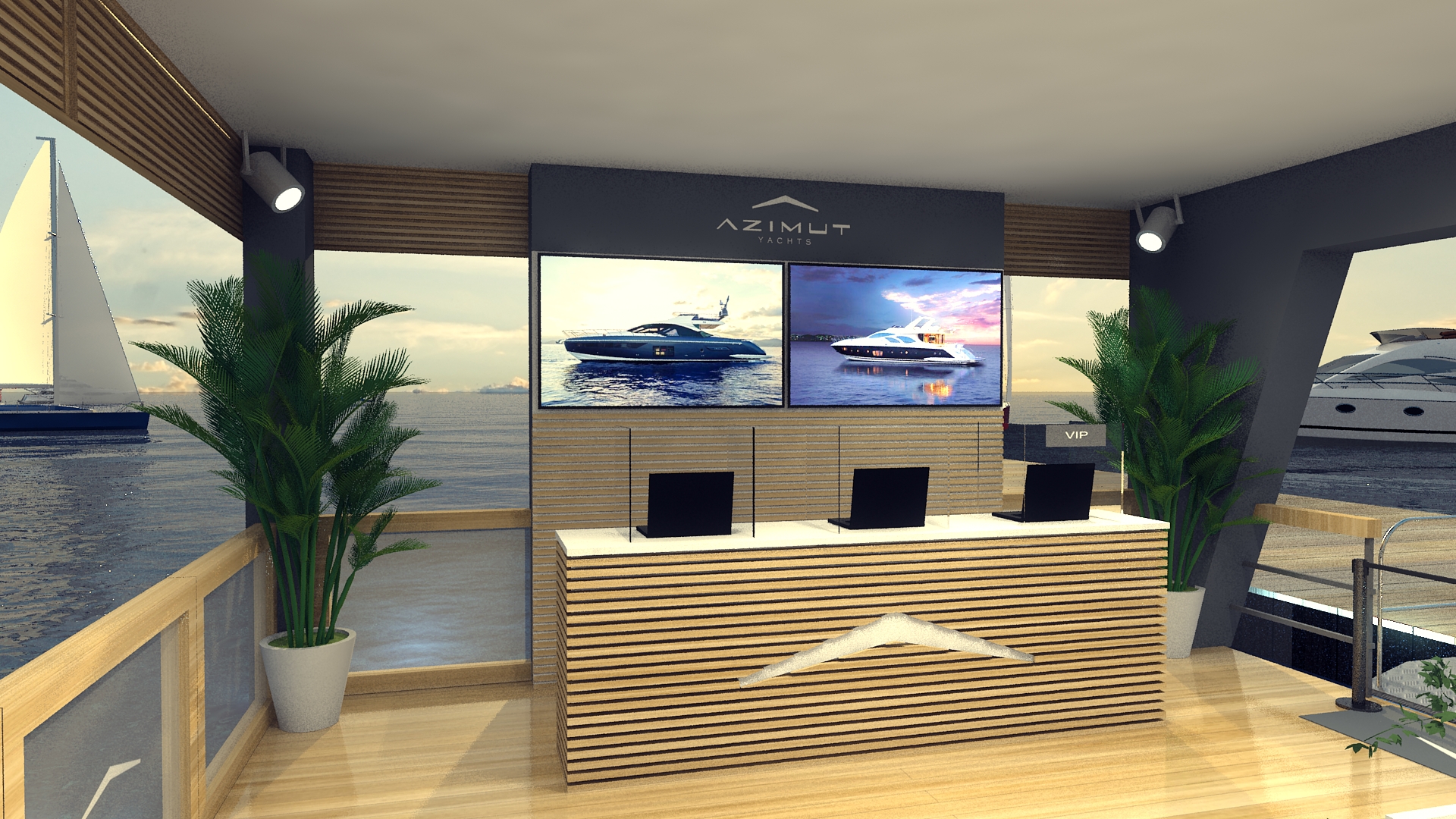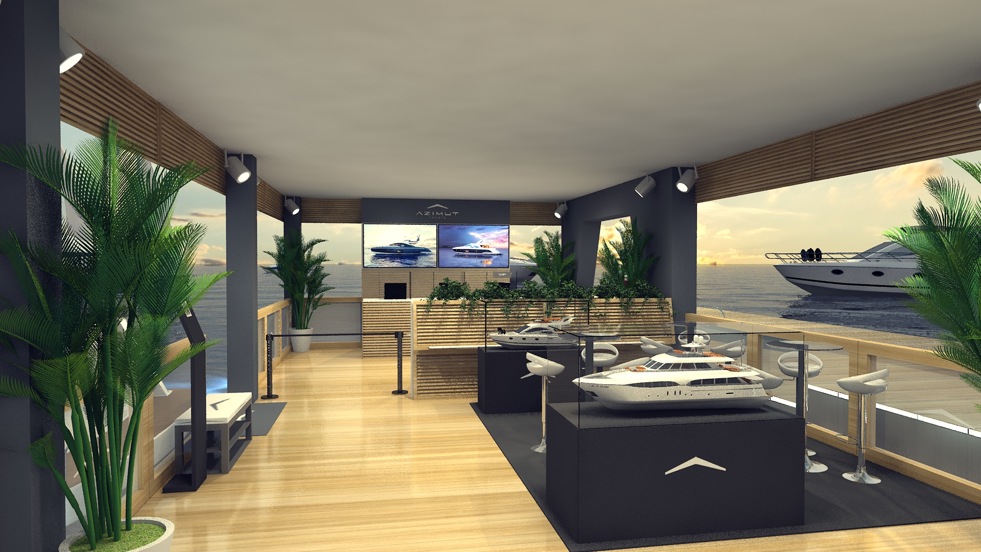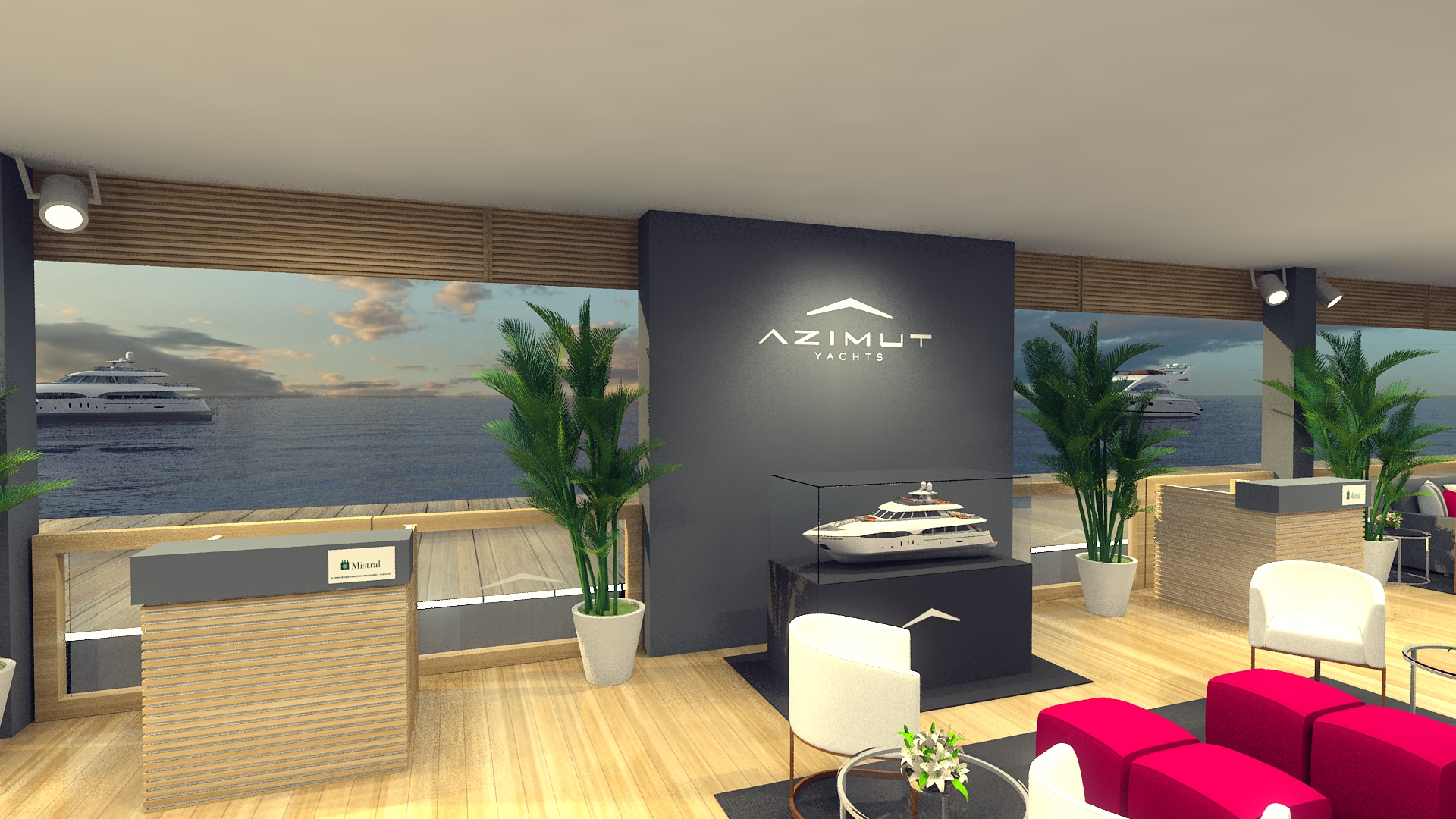 Portanto, nosso trabalho não se limita a criar ambientes virtuais apenas para visualização. E sendo assim, os 3D’s que desenvolvemos são ferramentas poderosas no processo de aprovação de cenografias em concorrências. E  permitindo assim que marcas como a Azimut escolham os melhores projetos. Então, quando se trata de eventos de luxo, como este, uma apresentação visual de alta qualidade é obviamente fundamental para garantir assim que as expectativas sejam atendidas e superadas.